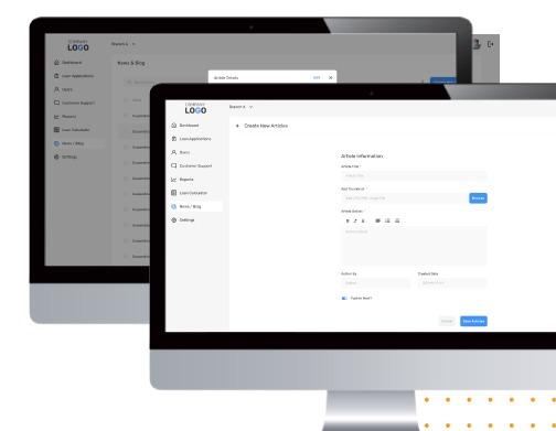 Say goodbye to tedious paperwork and complicated processes. Our CMS centralizes all loan administration tasks, allowing you to access comprehensive reports, manage users, track loan statuses, and monitor repayment histories with ease.
